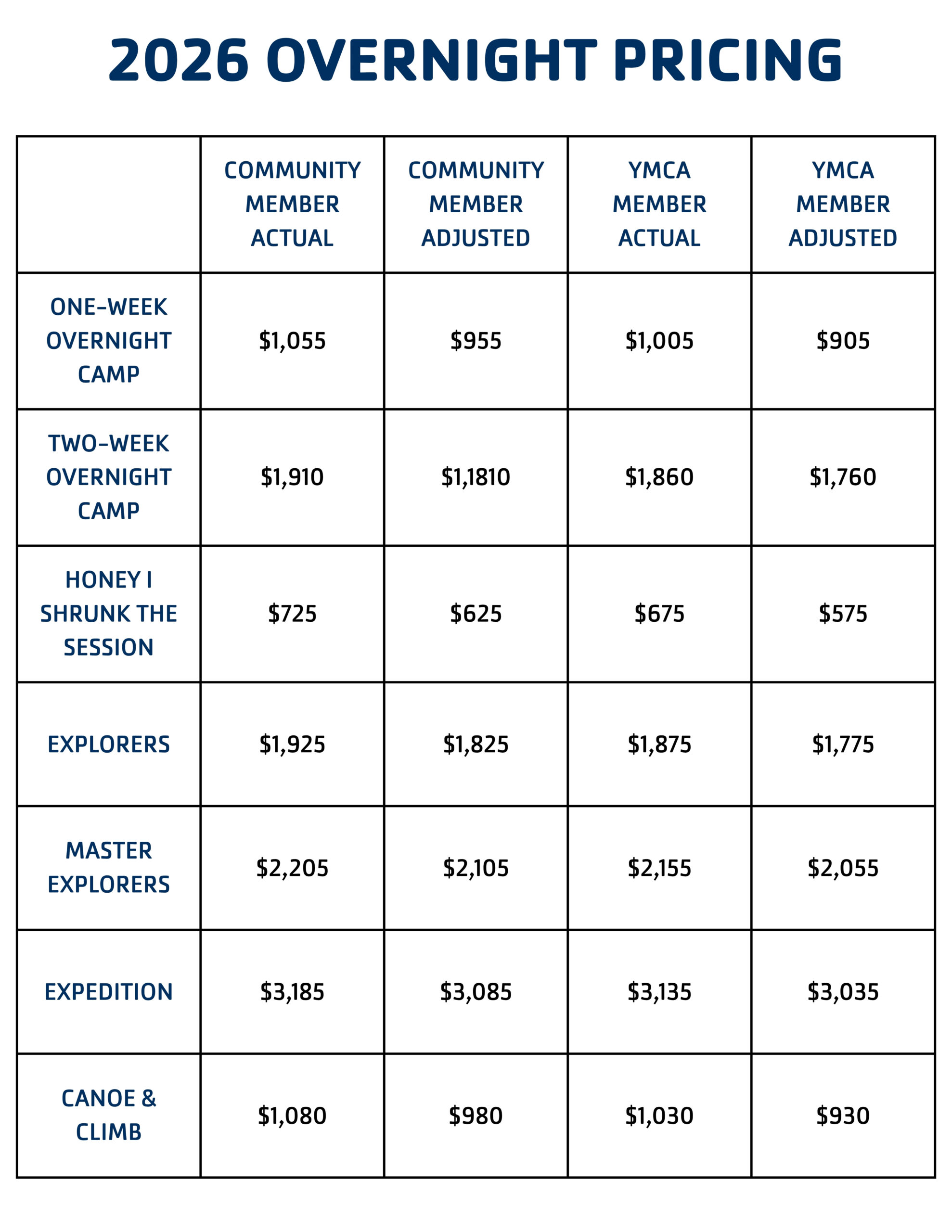 YMCA Camp Minikani is a community inclusive to all, founded on the belief that everyone is stronger when they have the opportunity to participate. In this spirit, we are happy to offer two voluntary prices, actual and adjusted. Families may choose the most suitable cost with no change to their camper’s experience.